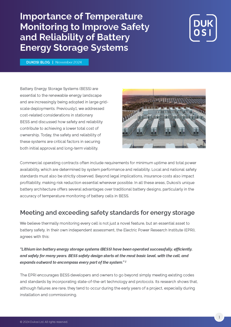 Blog: Importance of Temperature Monitoring to Improve Safety and Reliability of Battery Energy Storage Systems