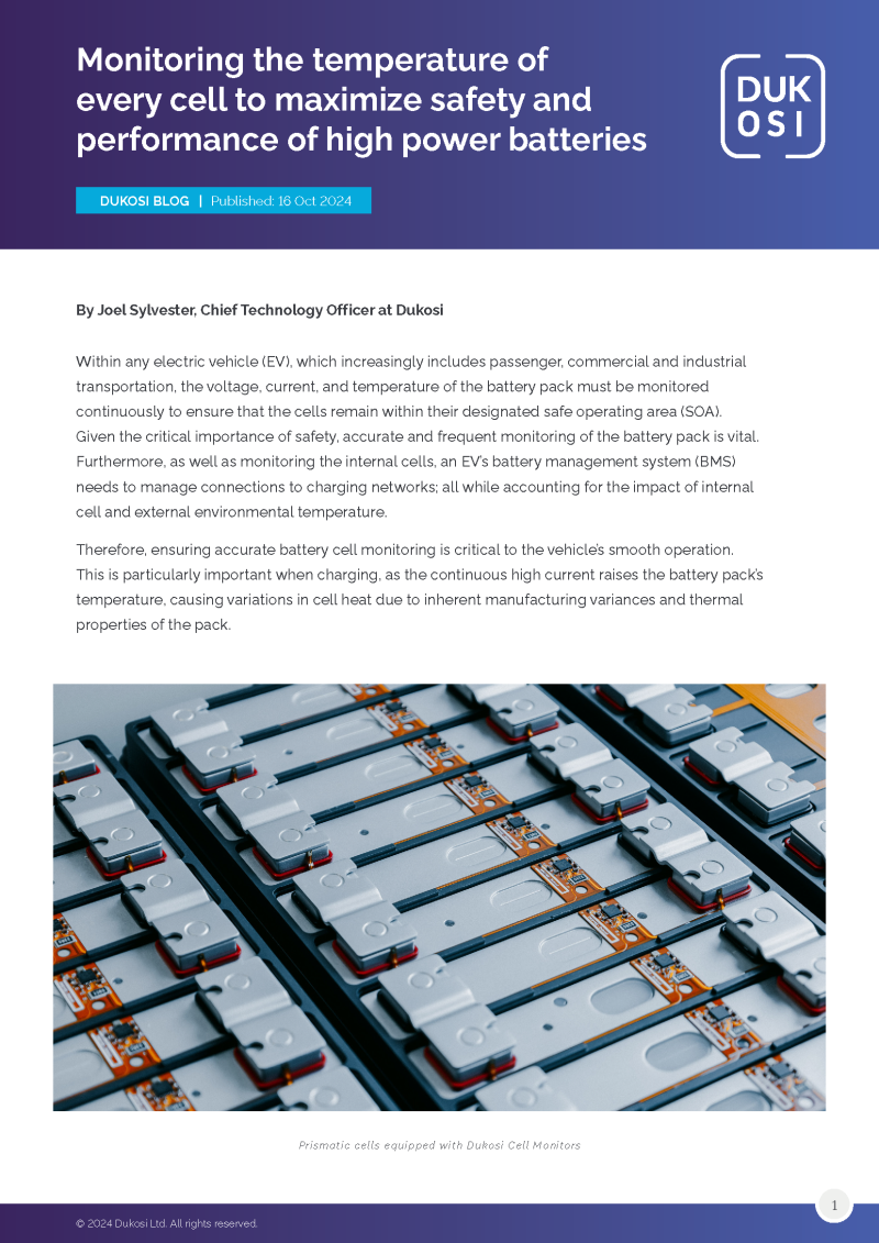 Blog: Monitoring the Temperature of Every Cell to Maximize Safety and Performance of High Power Batteries